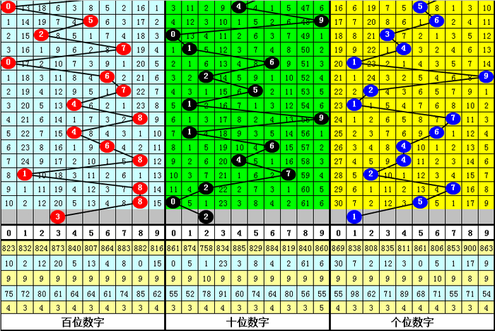 百位:上期奖号为:8,该位大号近期显露活跃,上期开出重号,本期提神该位下跌,参考号码3。
