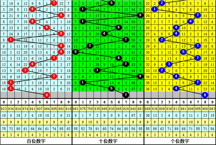 十位保举:近10期出现4个0路号、4个1路号、2个2路号,2路号证据低迷。本期提防1路号,参考号码1、4、7。