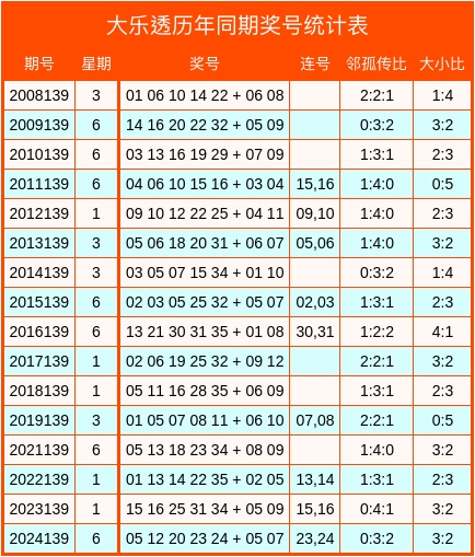 连号分析:积年同时中开出连号的概率为56.25%,前年同时奖号数据开出连号23,24,本期瞻望开出连号15,16。