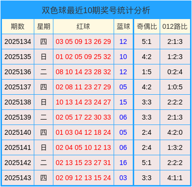 开奖回顾:第2025143期双色球开奖号码为:02、09、12、13、15、24+03。奇偶比为3:3山西创达伟业电子科技有限公司,012路比为4:1:1。
