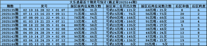 体彩大乐透第2025144期奖号为:02 05 13 15 28+05 08,前区号码大小比开出1:4,012路比开出1:2:2,奇偶比开出3:2,后区号码和值开出13,跨度开出3。
